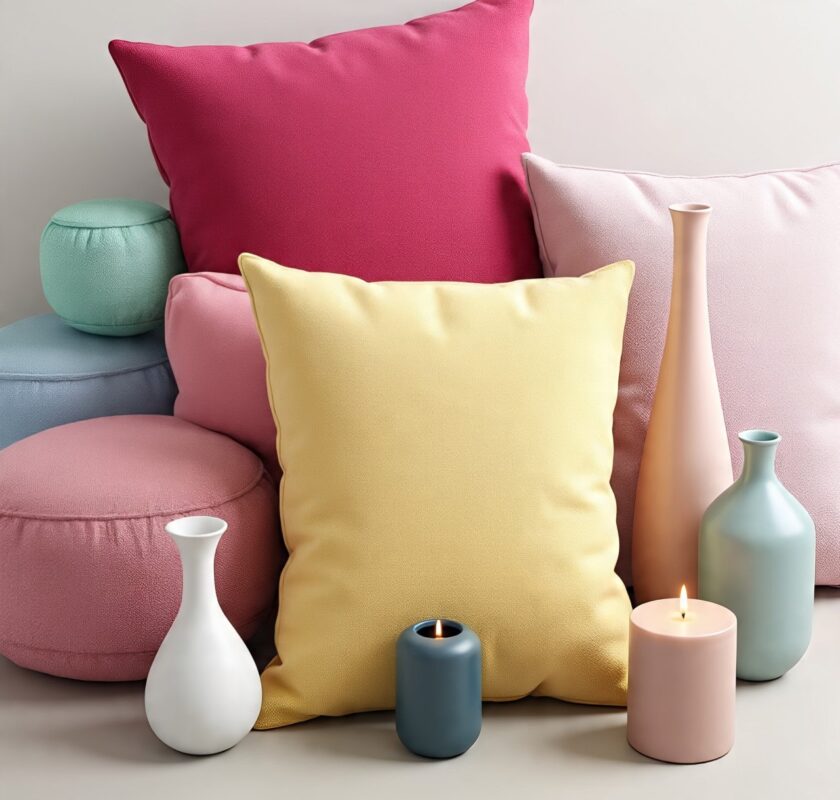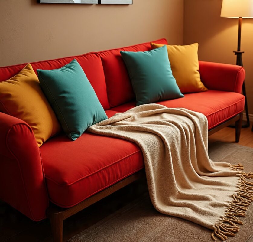 Give your sofas and chairs a fresh vibe with colorful cushions and soft throws. They bring instant warmth and personality to your home décor.