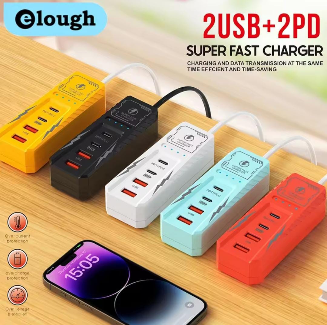 With 2 USB and 2 Type-C ports, you can charge multiple devices simultaneously without overloading a single outlet.
