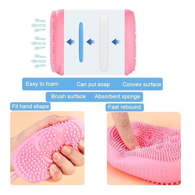 - Silicone Body Scrubber Bath Sponge – 2 in 1 Exfoliating Body Brush Loofah Shower Sponge for Women Men and kids