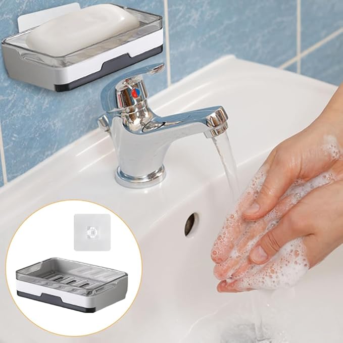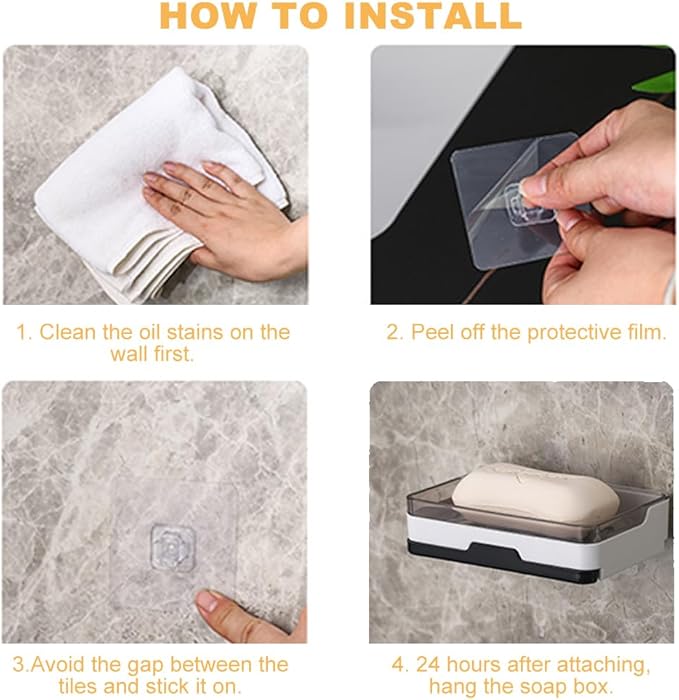 - Easy Installation Process:.Install soap dish on the wall with self-adhesive tape without drilling. The large soap holder fit any size or shape of soap, but also fit phones, razors, sponges, brushes and more. Great for use in bathroom, shower, kitchen or laundry room. Soap saver.